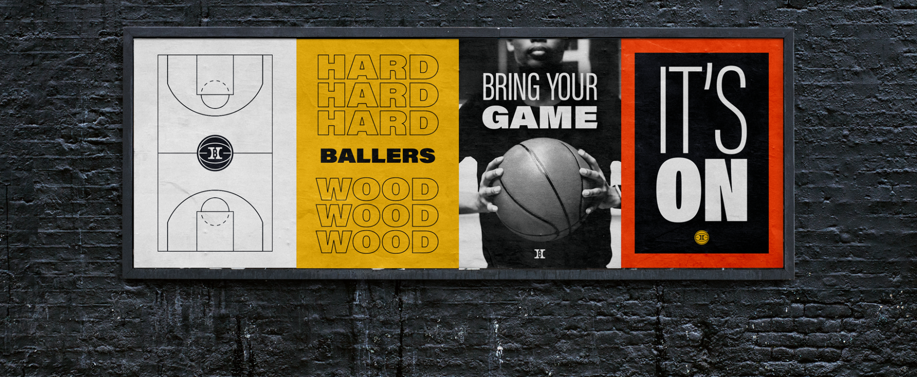 The Hardwood Ballers logo and monogram was inspired by the simple shapes and lines of a basketball and basketball court.