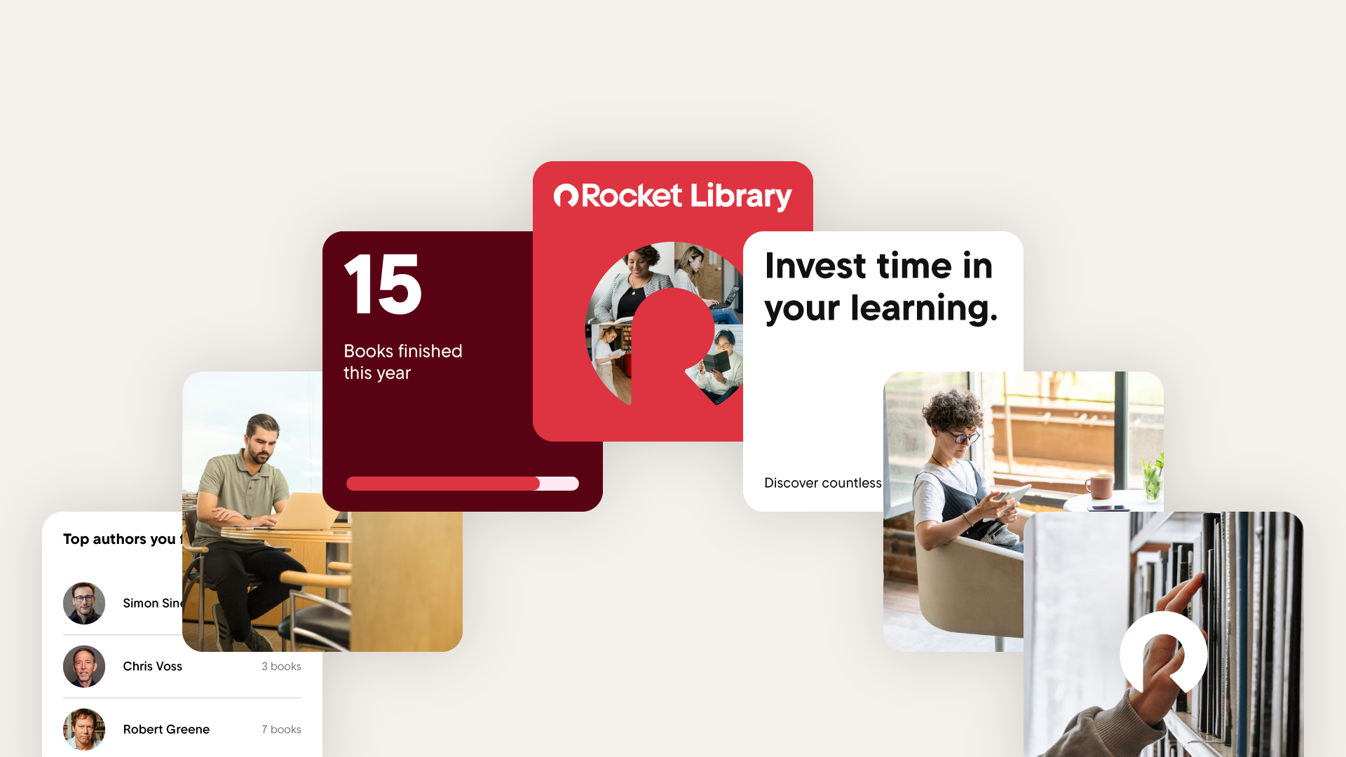 As part of a company-wide brand refresh, I collaborated with a cross-functional team of creatives throughout Rocket to unify and elevate its visual identity, including Rocket’s learning and development materials. Rocket’s internal and external-facing materials were completely rebranded to reflect the organization’s new mission, voice, and positioning.